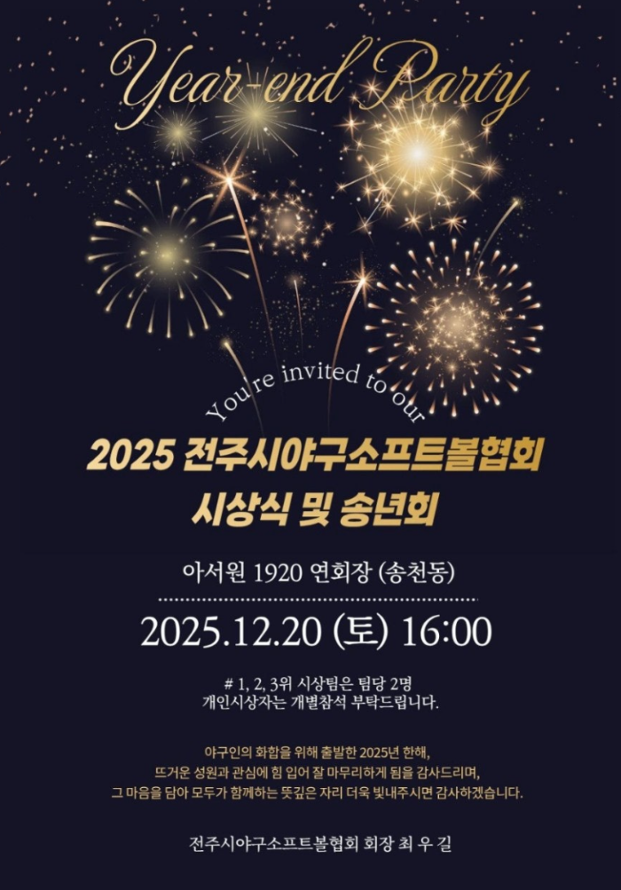 2025 전주시야구소프트볼협회 시상식 및 송년회